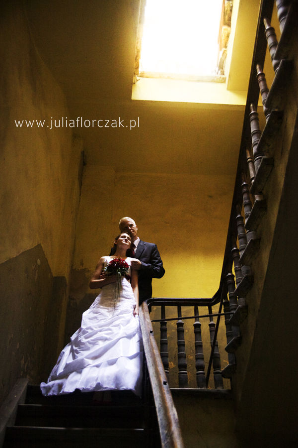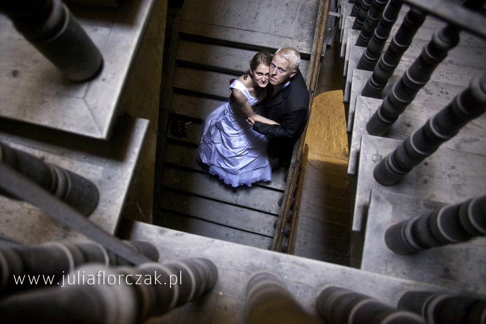Wakacje się kończą wypadałoby pokazać w końcu jakieś zdjęcia ślubne 🙂 Choć na codzień fotografujemy na śląsku (Zawiercie, dąbrowa górnicza, mysłowice, olkusz) do Esterki i Damiana na ślub pojechałam aż do Świdnika. Jednak sesje plenerową wykonywaliśmy już w Lublinie. Pierwsza część sesji odbyła się w dniu wesela, już po jego zakończeniu w nocy na zamku w Lublinie 🙂 Następnego dnia od rana zwiedzaliśmy zakątki Lublińskiego rynku. W niedzielny ranek na rynku odbywają się targi staroci więc dużo chowaliśmy się po okolicznych kamieniczkach. I dzięki temu znaleźliśmy naprawdę piękne miejsca, a przy okazji chłodziliśmy się w ten upalny dzień!