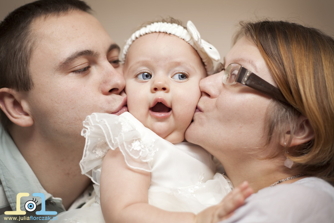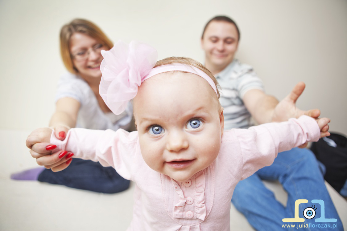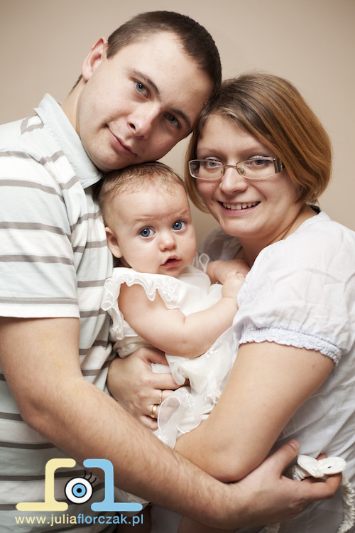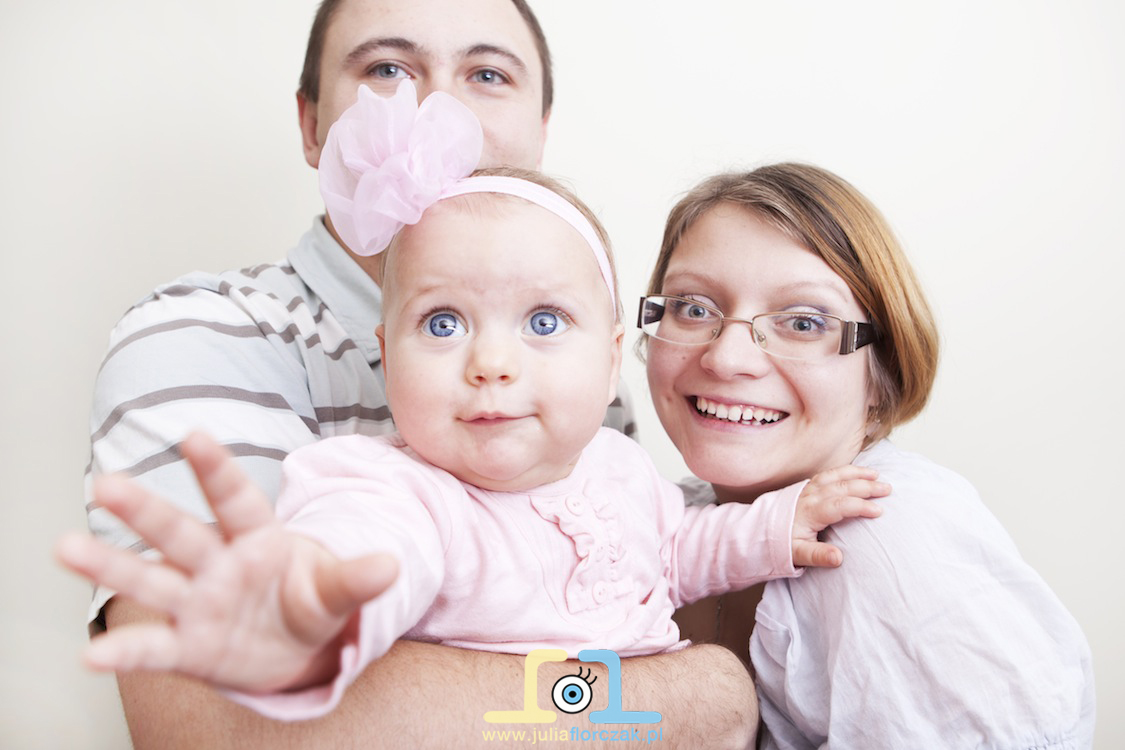 Rodzice Janki dostali bon prezentowy na fotografię dziecięcą od matki chrzestnej właśnie z okazji Chrztu. Długo odkładali ją w czasie, ale przy końcu roku odezwali się i stwierdziliśmy, że już czas aby sesje zrealizować. Janka do tego czasu nauczyła się już siedzieć no i wstawać, z okazji nabytych umiejętności nie chciała siedzieć w miejscu i być ustawiana – kto by się jej dziwił?! 🙂 Janka niespotykane imię, ale oprócz tego jest tez wyjątkową dziewczynką. Ma piękne duże oczka i co chyba nigdy wcześniej mi się nie zdażyło.. śmieszy ją lampa błyskowa 🙂 Kiedy robiłam zdjęcie i błyskał flesh na buźce Janki pojawiał się śliczny uśmiech 😀 Janka przyjechała do mnie z Częstochowy, a sesja odbyła się u mnie w domowym zaciszu w Zawierciu. A co więcej..? Zobaczcie poniżej całą sesje rodzinną. Rodzicom Janki – Agnieszce i Krystianowi dziękuję za świetną współpracę podczas sesji 🙂