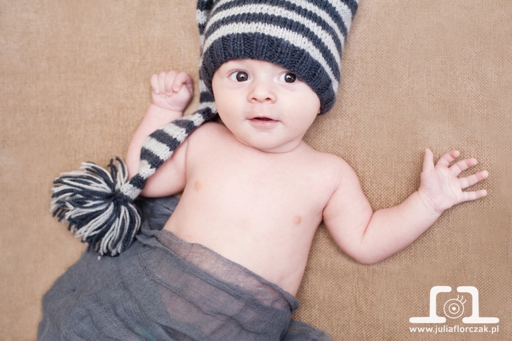 Krzyś przyjechał do mojego studia z rodzicami i był bardzo dzielny 😉 Jak widać na zdjęciach jest też z niego mały przystojniak! Na sesji Krzyś dokonał też odkrycia – zauważył, że ma stopy i baardzo się zainteresował 😀 A na koniec na chwilkę słodko usnął, niestety tylko na krótką chwilkę..